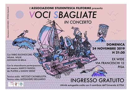 Domenica 24 Novembre alle 21:30, all'Ex Wide, andrà in scena concerto di Teatro Canzone delle “Voci Sbagliate”. L'ingresso è gratuito.
