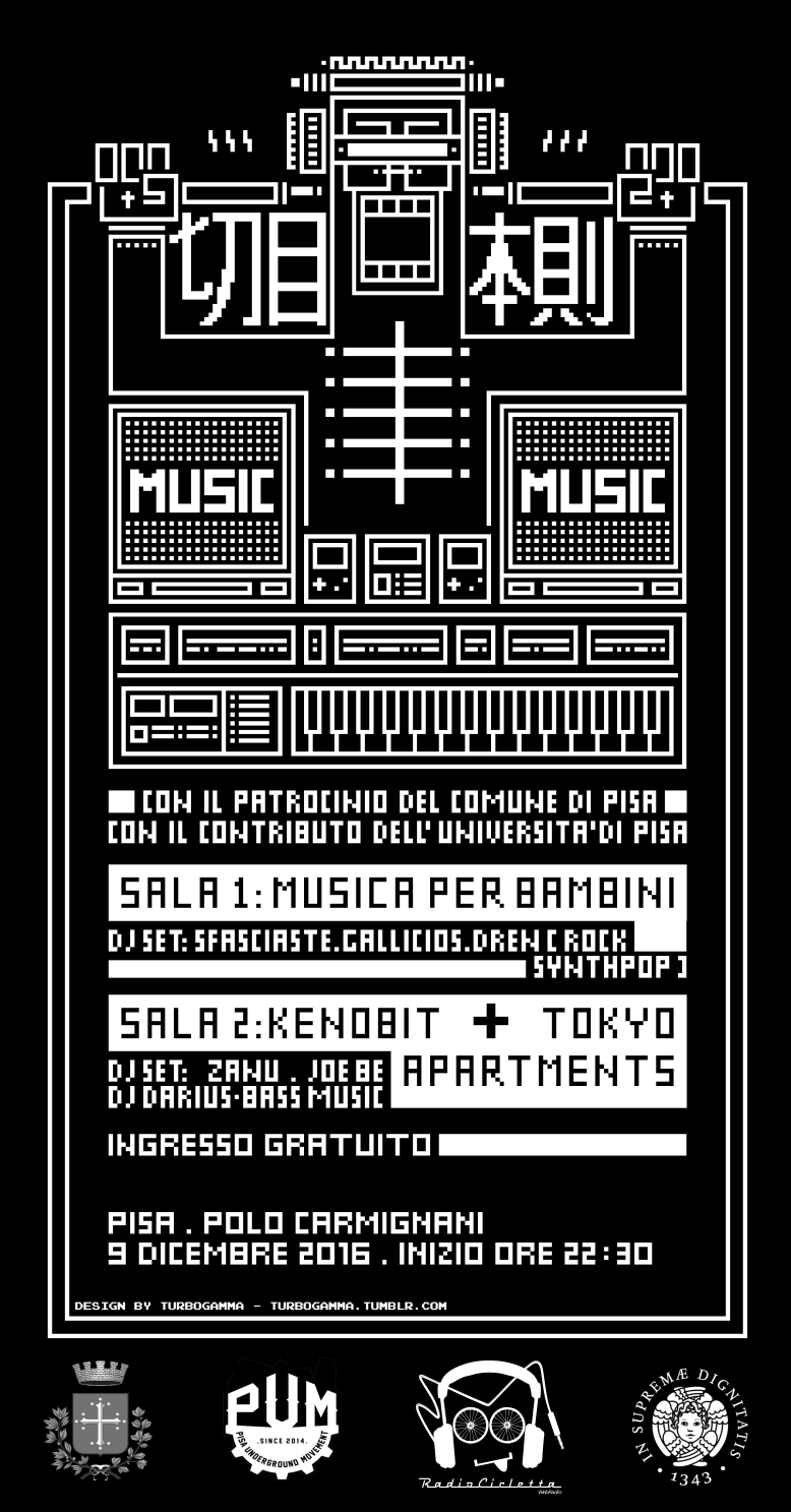 Il 9 dicembre alle ore 22, presso il Polo Carmignani si terrà un concerto con esibizioni degli artisti MusicaPerBambini, Kenobit e Tokyo Apartments.