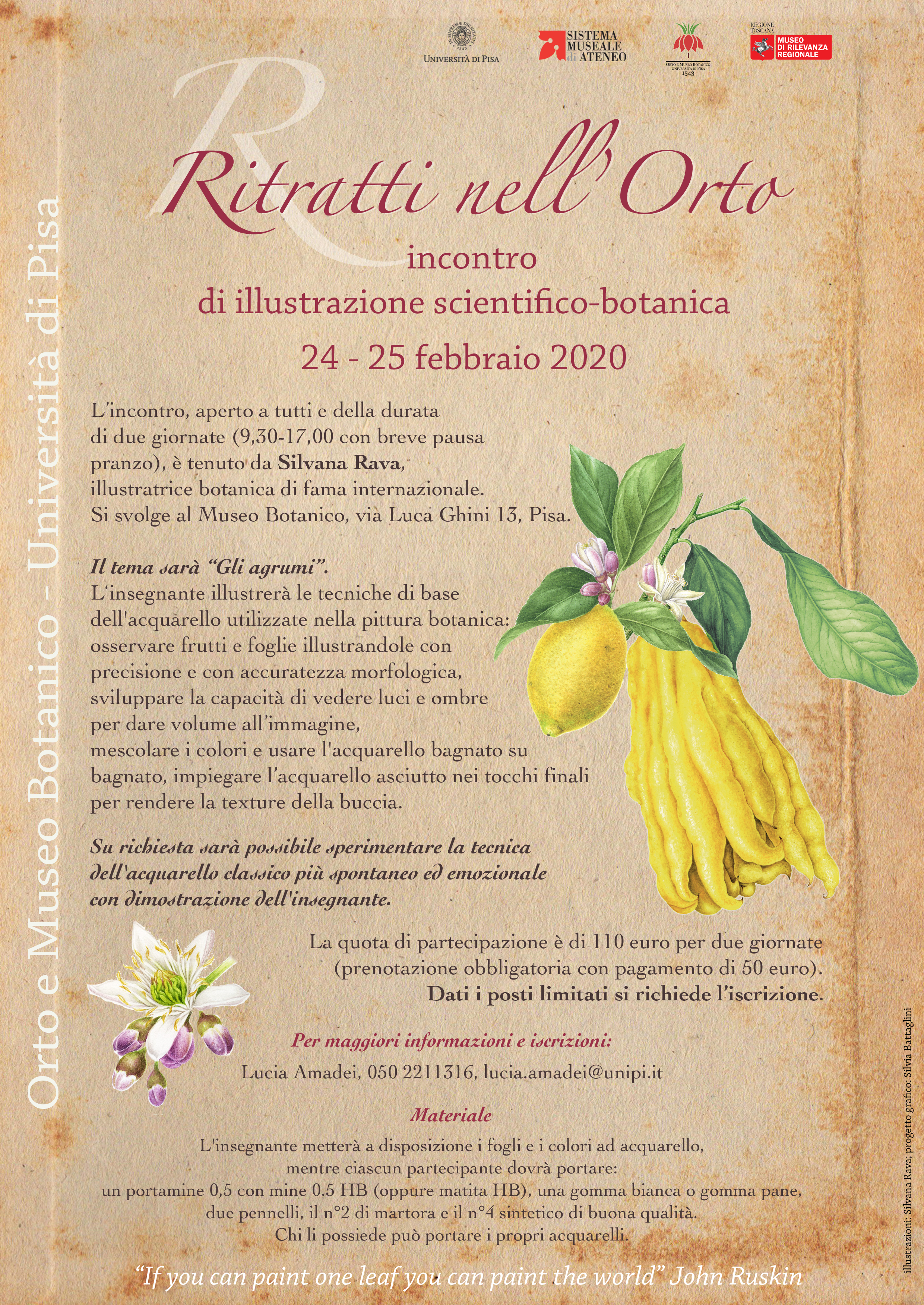 Il 24 e 25 febbraio 2020, presso il Museo Botanico dell’Università di Pisa, si terrà il seminario di pittura botanica ad acquarello sulla copia dal vero di agrumi.