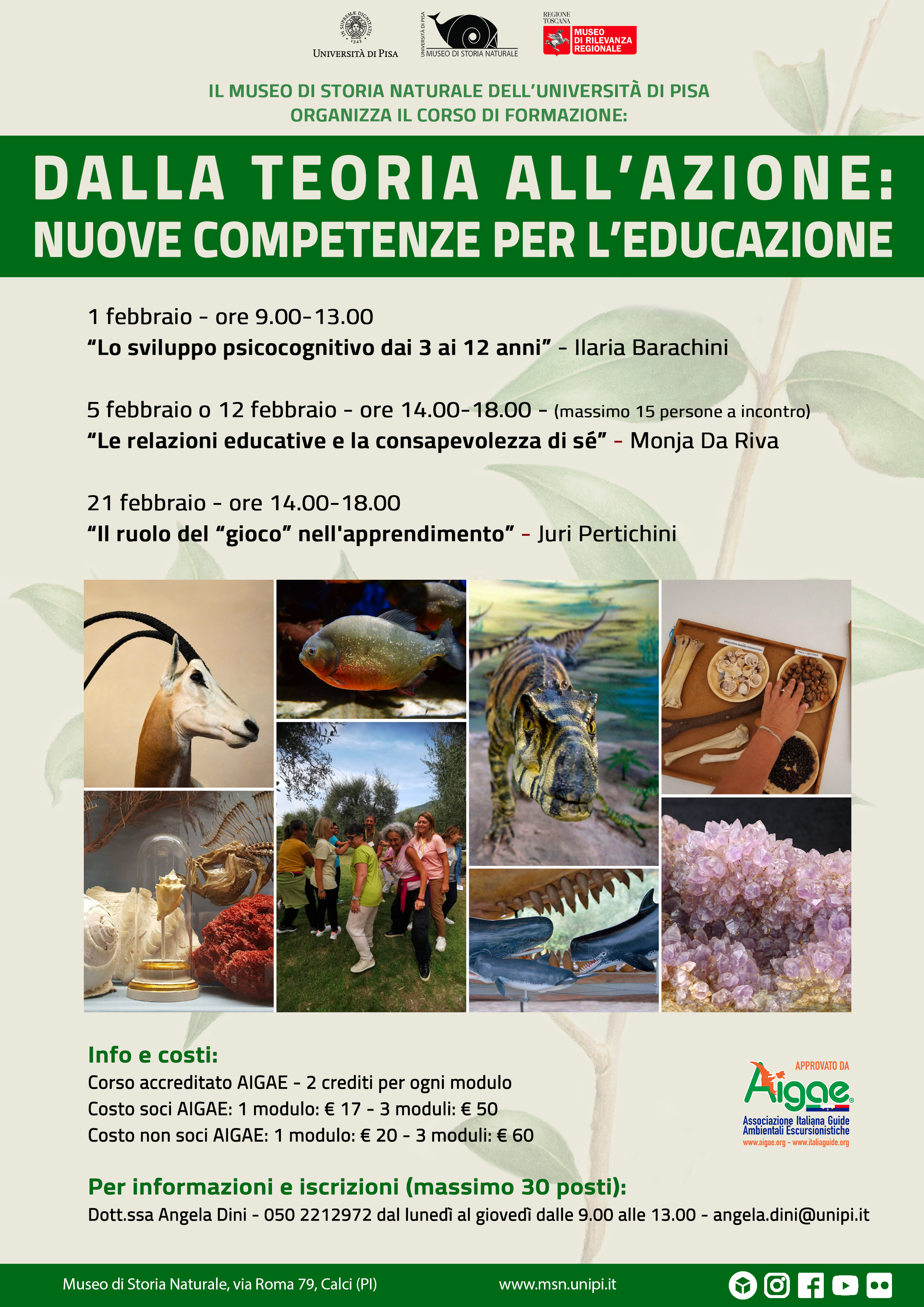 Il Museo di Storia Naturale presenta un percorso dedicato alla formazione di guide ed educatori museali, focalizzato sull’integrazione di pedagogia, psicologia e sul ruolo cruciale del gioco nel processo educativo.